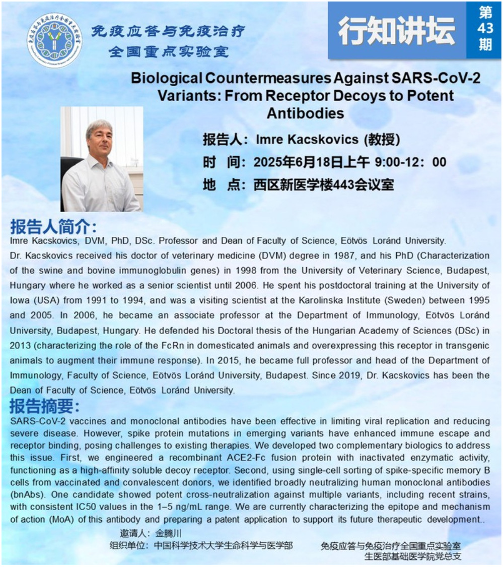 行知讲坛:2025.06.18 匈牙利罗兰大学 Imre Kacskovics 教授学术报告会